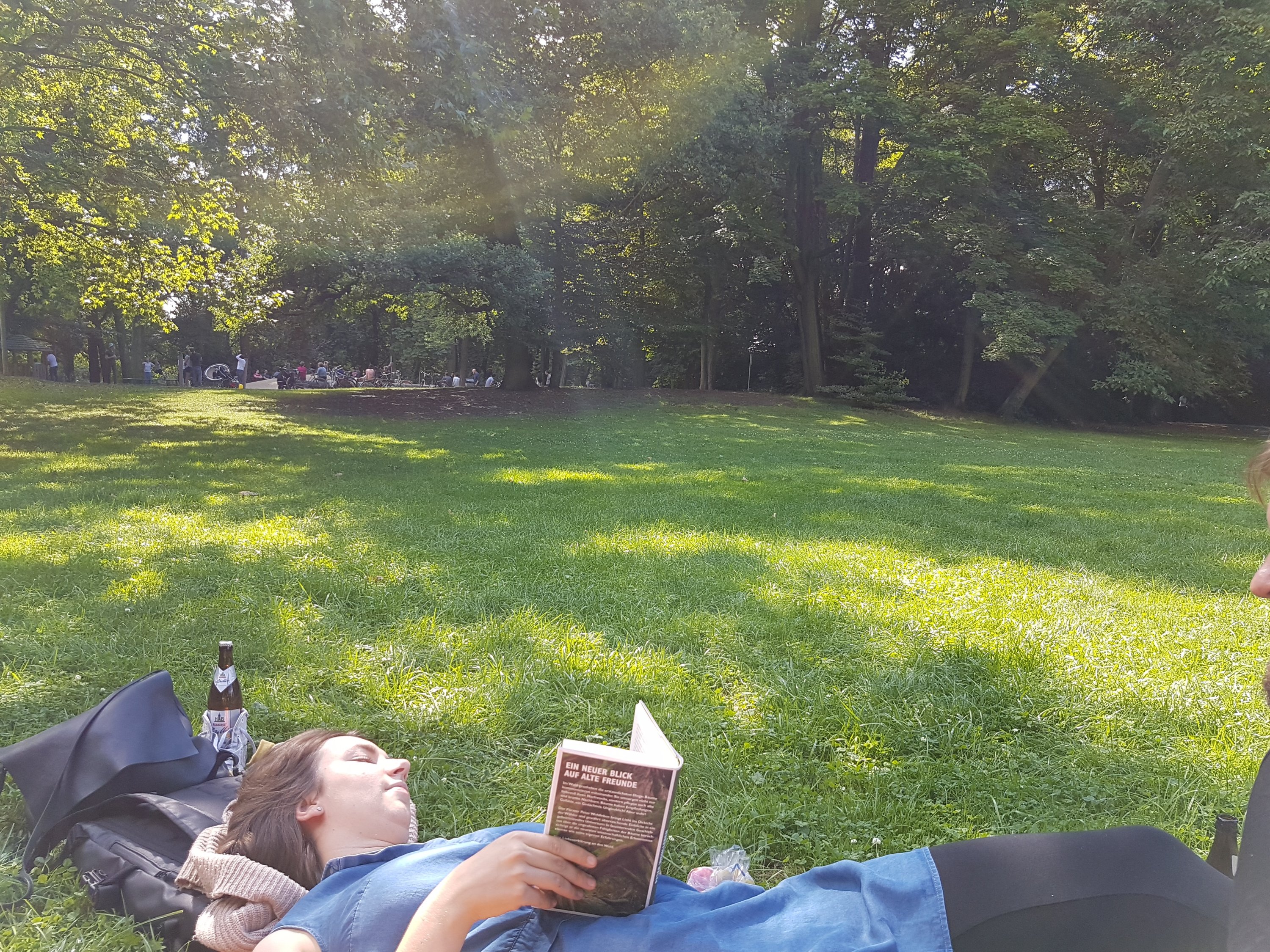 👇 Sunny days are rare for Germans, naturally they are meant to be spent outside. Pack up a book, drinks, some snacks, badminton rackets and a picnic rug, Happy days! August-Siebert-Strasse.