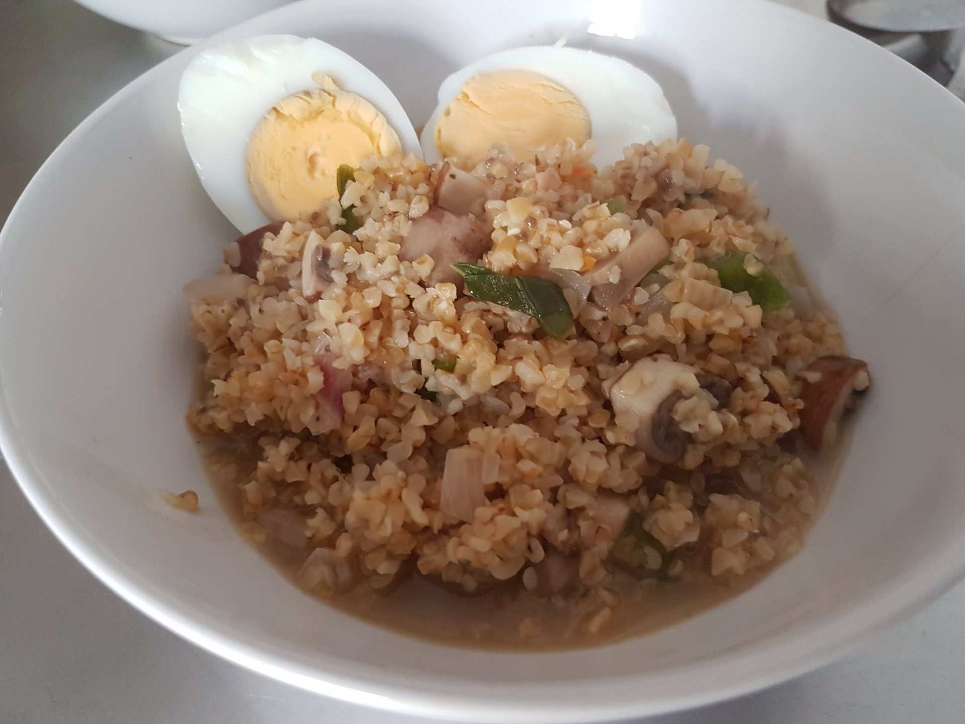 I know it doesn’t look so appealing 😁, but this is the first bulgur I cooked. Pretty good actually, a good alternative to rice.