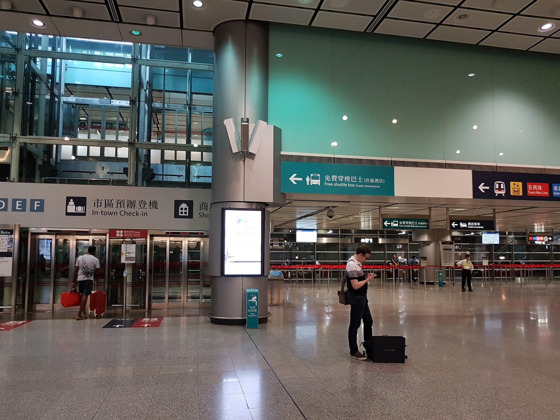 π One way to get to the airport at Hong Kong is by taking MTR, Airport Express. Costs $170 HKD for 2 people from the MTR Central Station. It took less than 30 minutes, airlines and their terminals are displayed on the TV screen inside the wagon.