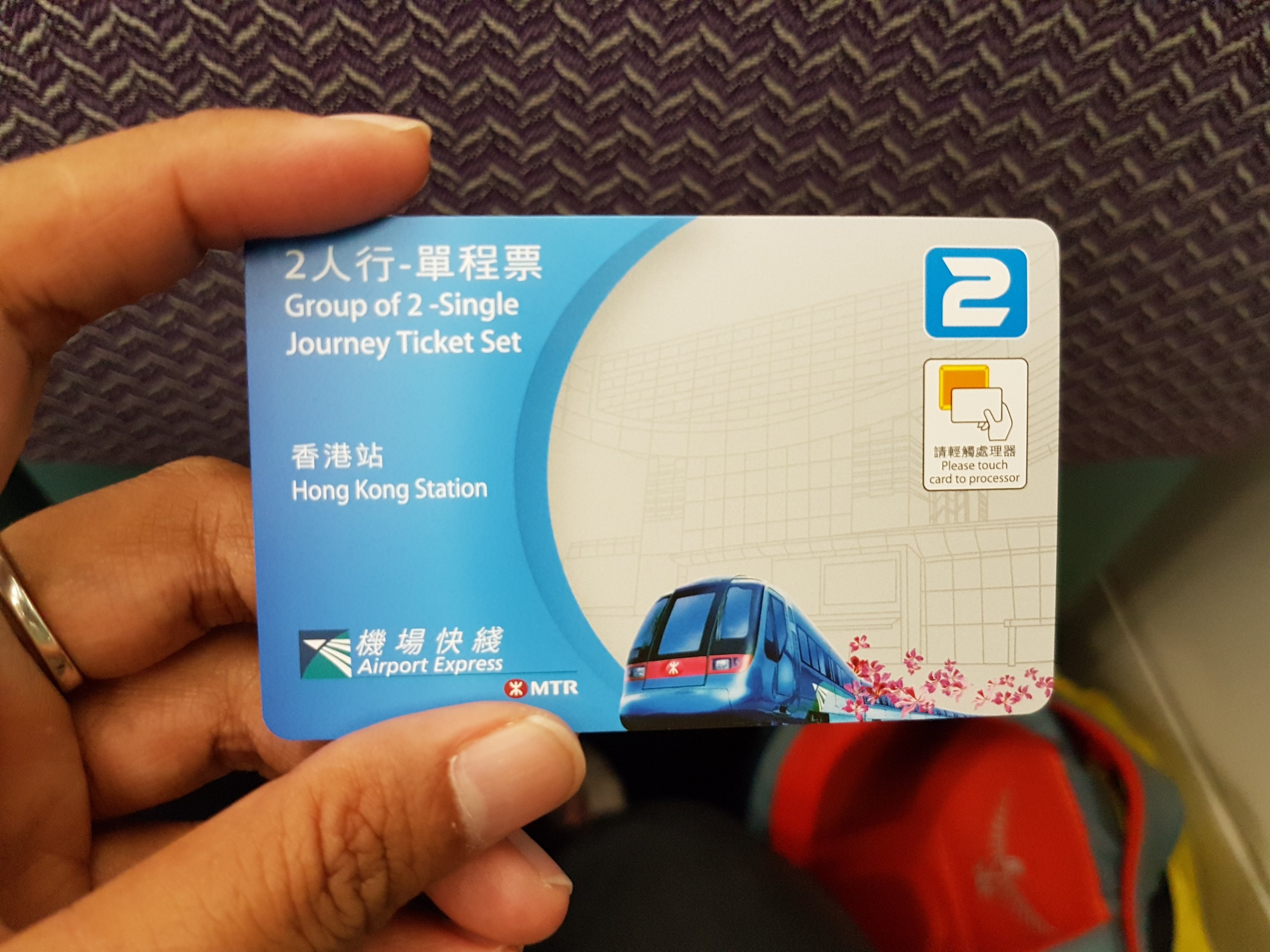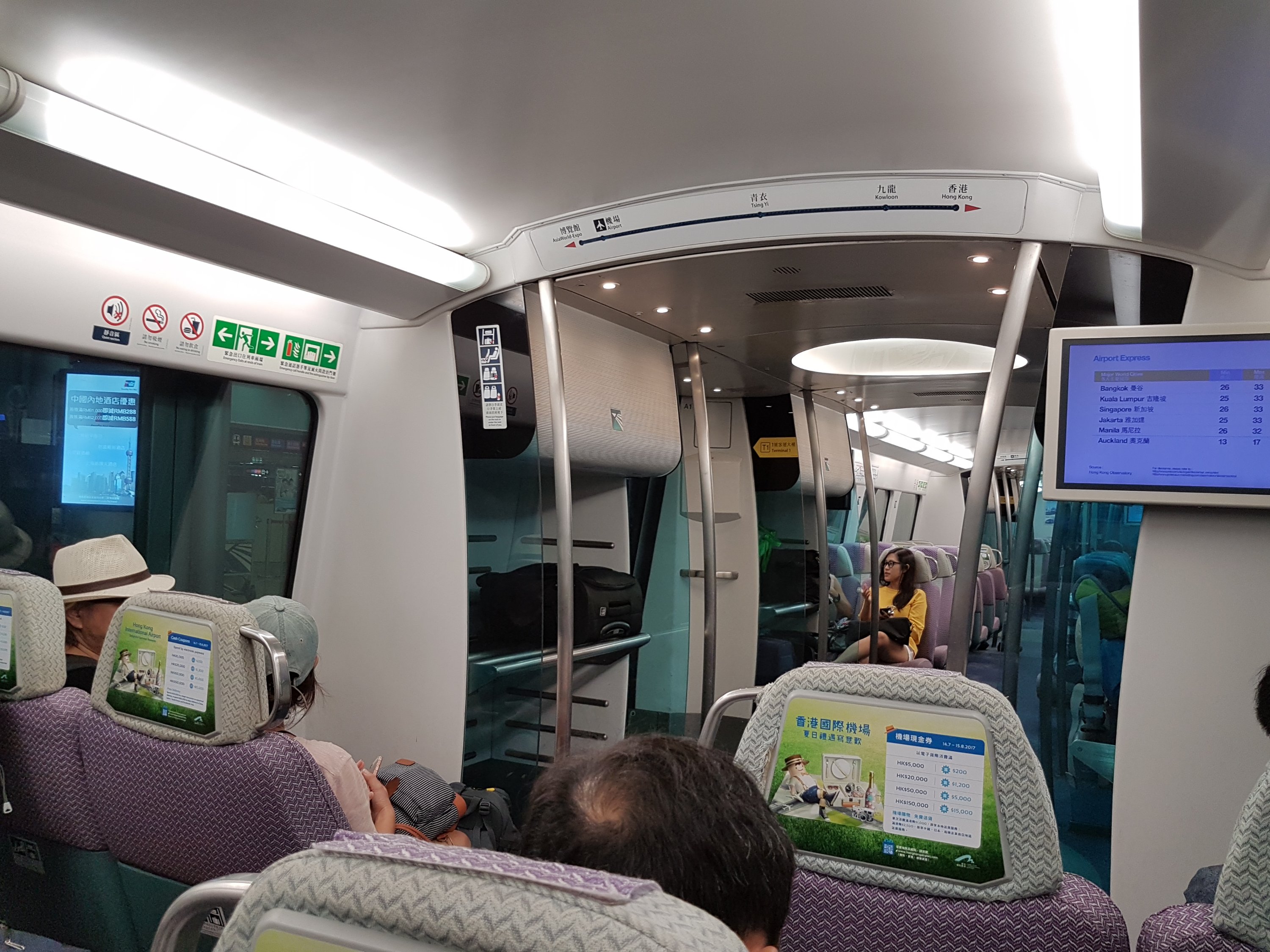 π One way to get to the airport at Hong Kong is by taking MTR, Airport Express. Costs $170 HKD for 2 people from the MTR Central Station. It took less than 30 minutes, airlines and their terminals are displayed on the TV screen inside the wagon.