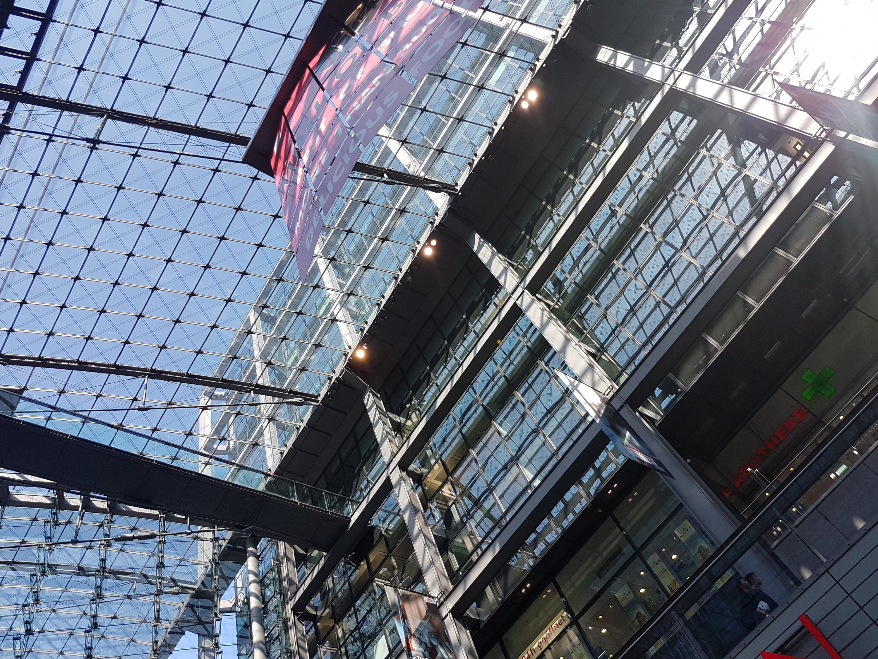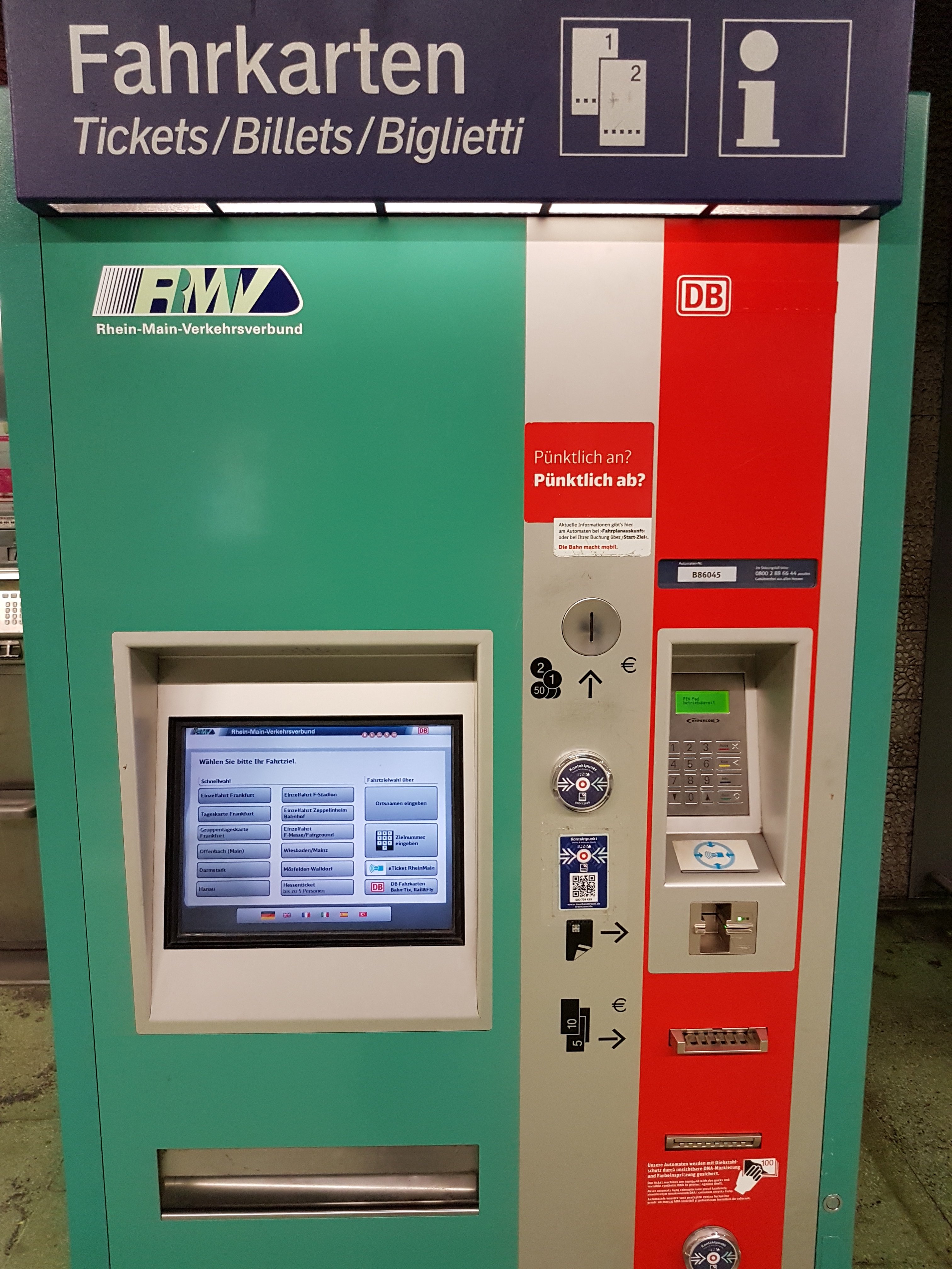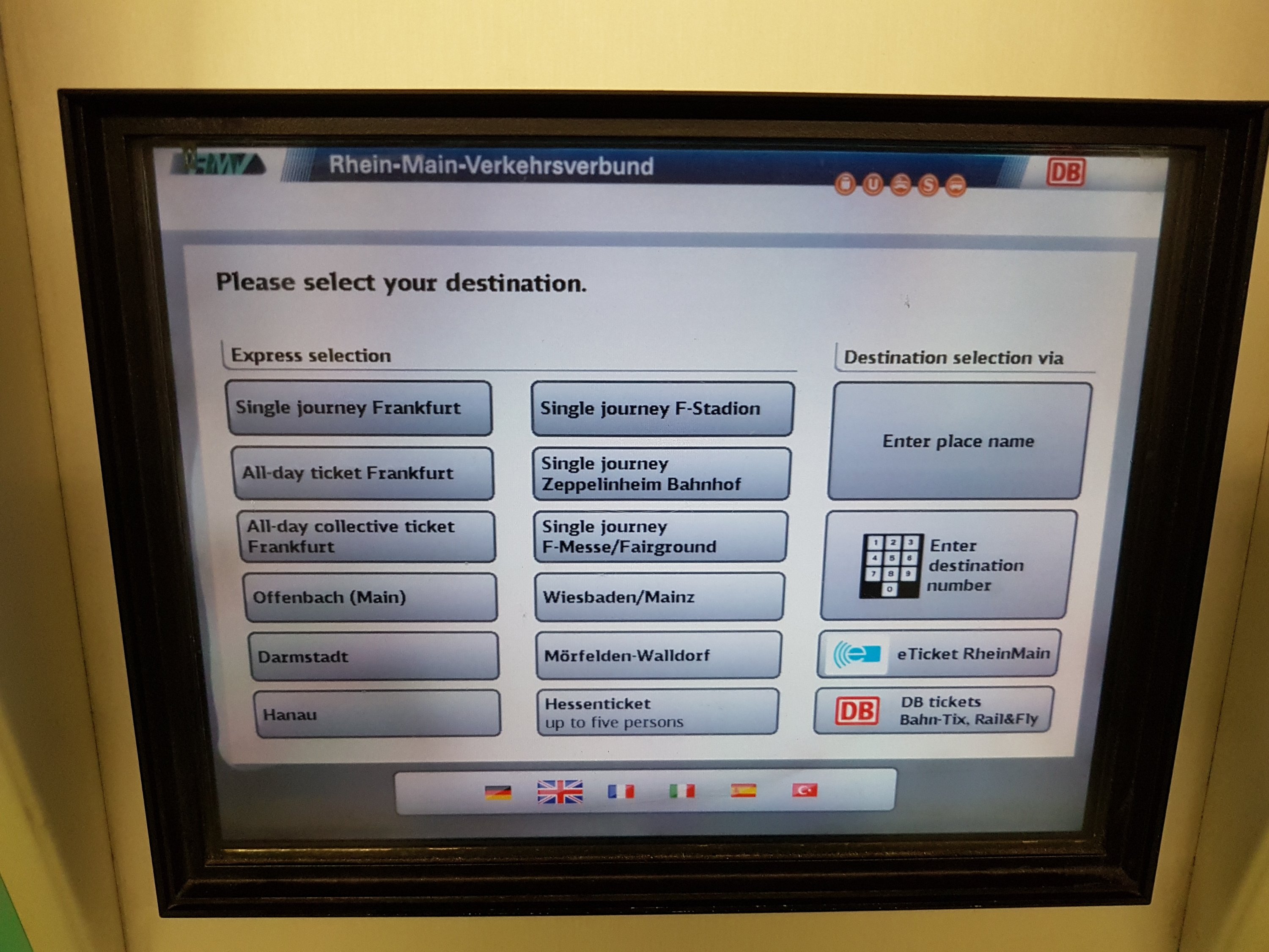 π Frankfurt International Airport. We arrived at Terminal 2 and took Skyline to get to Terminal 1. It’s free and fast. Terminal 1 is where you can take the public train, long distance and regionals. The station is just below Terminal 1. There are ticket box machines where you can place money and coins. We bought a one way ticket to the city for 4.8 Euro. They don’t stamp or directly check your tickets here, they just expect you to be responsible and obey the rule. What a disciplined society!