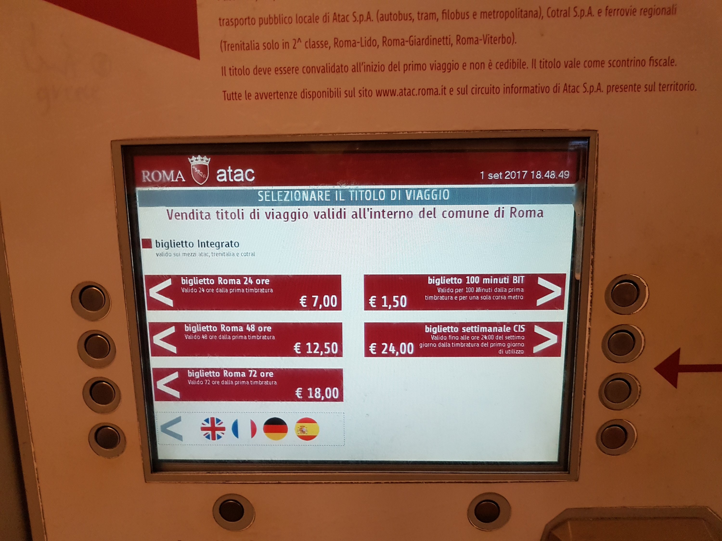 π Metro at Rome. You can buy tickets at the machine, counter or small independent kiosks. If you’re planning to travel around the town for the day, go for the 24 hours package for β¬7.