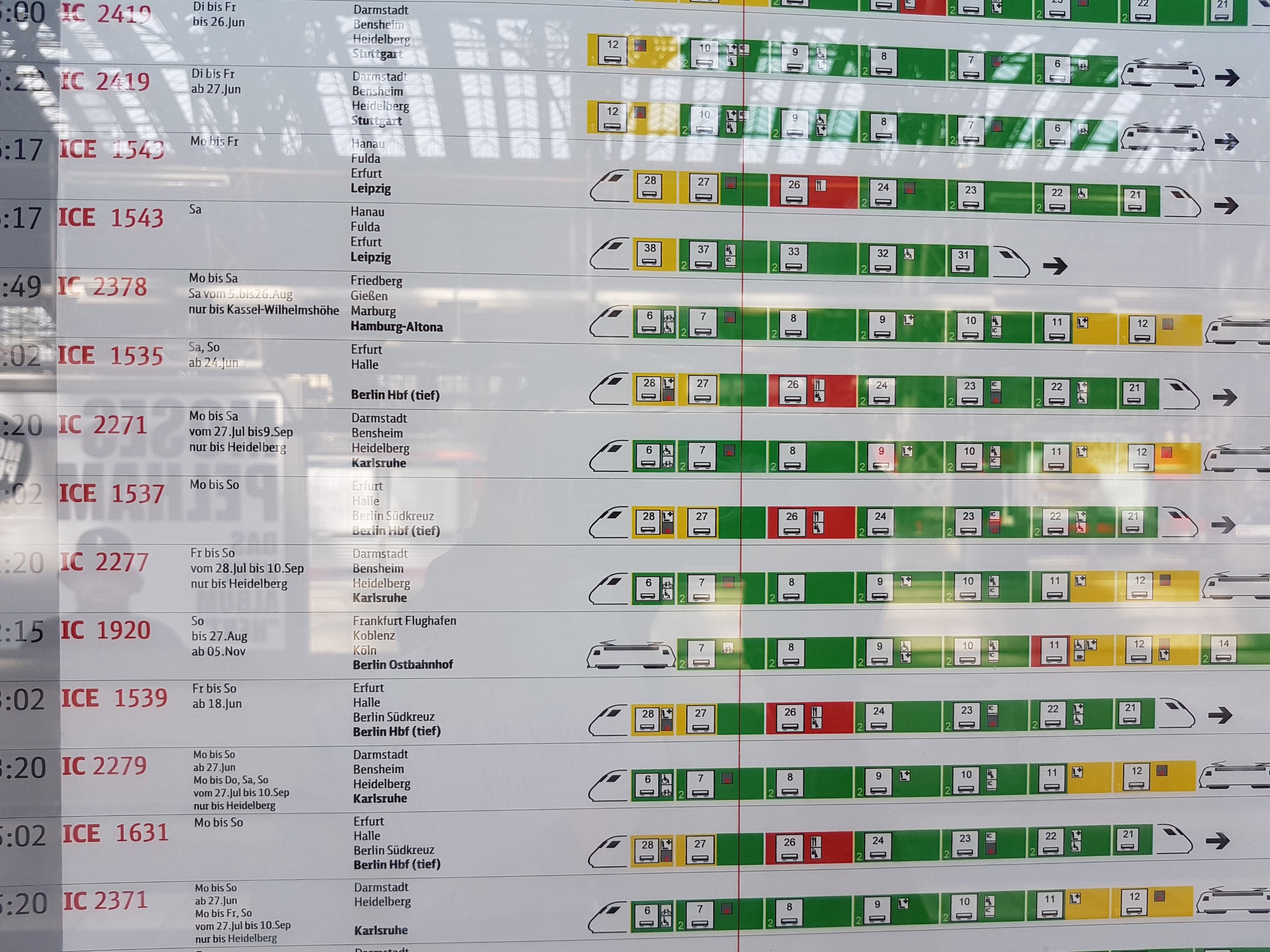 π Information board at Berlin Main Station telling timetable of long distance trains.