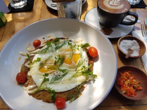 It took a while until we got to Corner House, heee …. It’s at the … corner! Decent place for a breakfast, gorgeous coffee, sunny small garden at the back. A bit industrial deco inside.